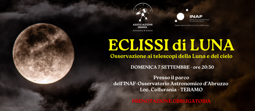 Domenica 7 settembre, il pubblico potrà vivere l’emozione dell’Eclissi di Luna con l’associazione Urania-Astronomia & Scienza in collaborazione con l’INAF-Osservatorio Astronomico d’Abruzzo. Una serata magica sotto il cielo stellato piena di mistero e fascino. Dalle 20:30 alle 23:00 si potrà osservare il cielo e la Luna con i telescopi presso il Parco dell’Osservatorio Astronomico d’Abruzzo, sulla […]