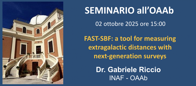 Giovedì 02 ottobre alle ore 15:00, il Dott. Gabriele Riccio, dell’INAF-Osservatorio Astronomico d’Abruzzo, terrà il seminario dal titolo “FAST-SBF: a tool for measuring extragalactic distances with next-generation surveys”. Abstract: A precise determination of the distance is essential for deriving nearly all key physical properties of cosmic structures and objects, including their mass, luminosity, and size. […]
