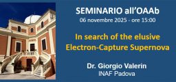 Giovedì 27 novembre alle ore 14:00, il Dott. Matteo Bezmalinovich (INAF – Osservatorio Astronomico d’Abruzzo, IT) terrà il seminario dal titolo “Modelling of early-stage kilonova ejecta opacity in the multi-messenger era: the selenium case”.
